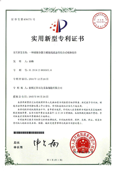 一種旋轉(zhuǎn)床反應器專利證書